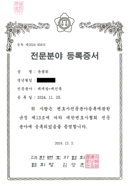 전문분야등록증서(박기호-재개발.재건축) 전문분야등록증서(박기호-재개발.재건축)